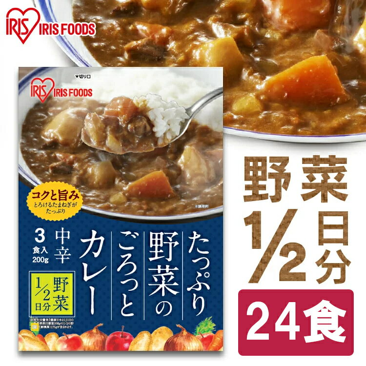 【P10倍★4日20〜24時】 【送料無料】【24食セット】レトルトカレー たっぷり野菜のごろっとカレー 24食 200g 野菜1/2日分 8個パック(200g×3P)カレー 野菜 野菜カレー 中辛 中辛カレー 非常食 インスタントカレー パウチ 3P×8個 1ケース まとめ買い アイリスフーズ