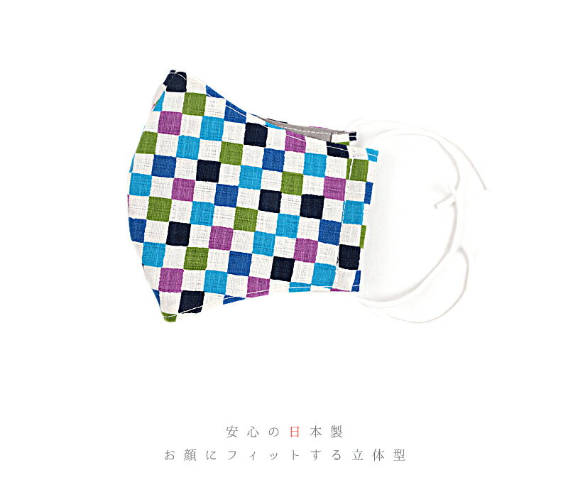 マスク 布マスク 和柄 日本製 綿 立体型マスク おしゃれ 繰り返し 洗える 調節できる紐 紐 結ぶタイプ 使える 白 オフホワイト 青 紫 緑 市松 チェック ブロックチェック 柄 顔にフィット 大人 痛くない フリー メンズ レディース キッズ 3D 和装 着物 No.19-0051-ss