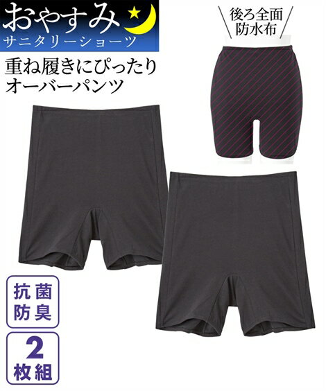 ショーツ サニタリー 大きいサイズ レディース おやすみサニタリー 多い日の夜も安心 抗菌防臭 加工 むれにくい サニタリーオーバー パンツ 2枚組 2枚組 8L/10L ニッセン nissen 詳しく見る