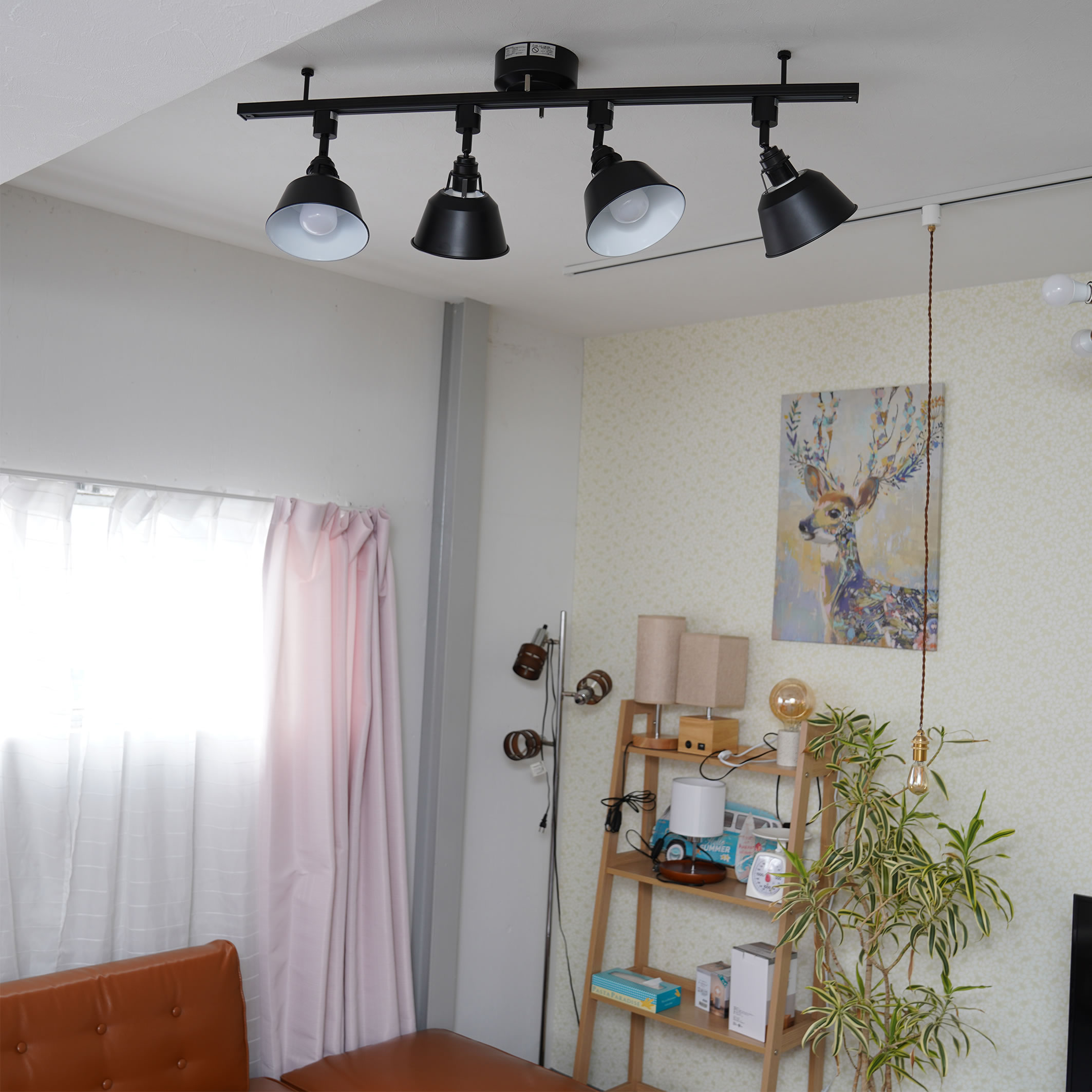 【※当商品は、ライティング用スポット器具4個+ライティングレール1mセットの販売です】 工事不要の簡単取付け簡易取付けタイプの「ライティングレール」は、天井に穴を開けずに設置ができる為、賃貸のお住いでも安心してお使い頂けます。